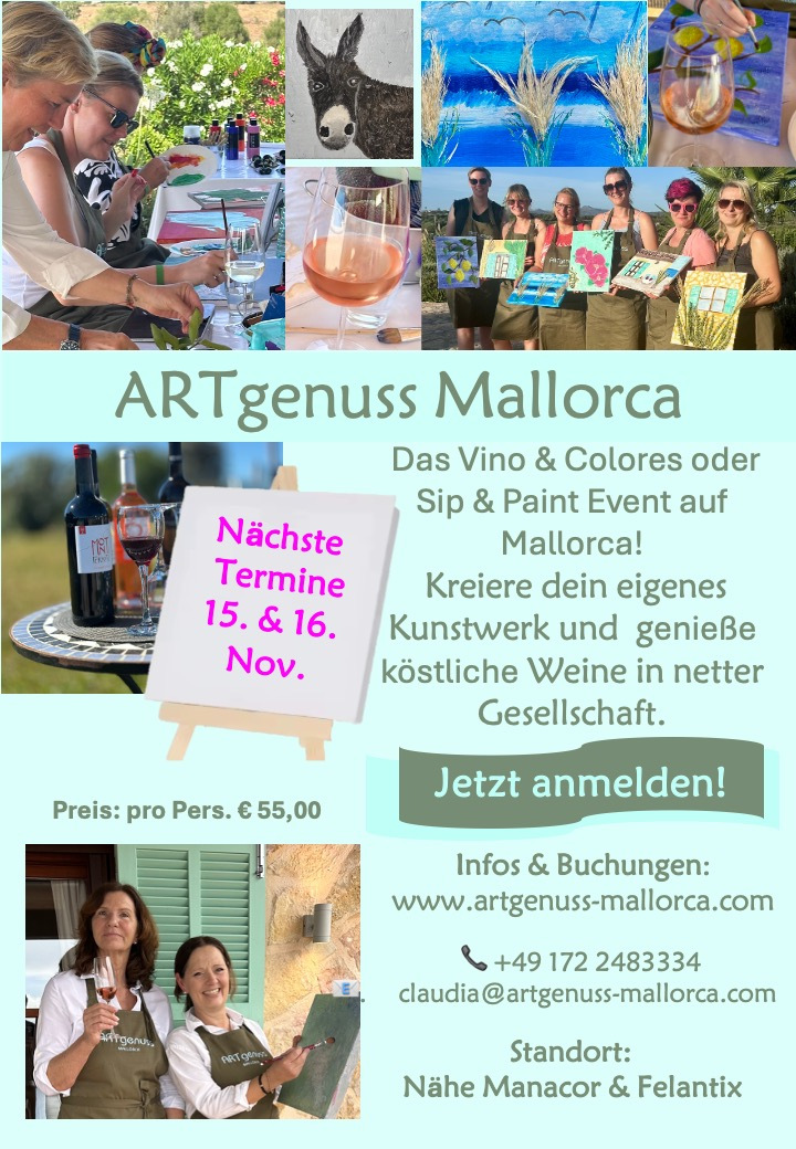 Infos & Buchungen - claudia@artgenuss-mallorca.com Tel.: +49 1722483334