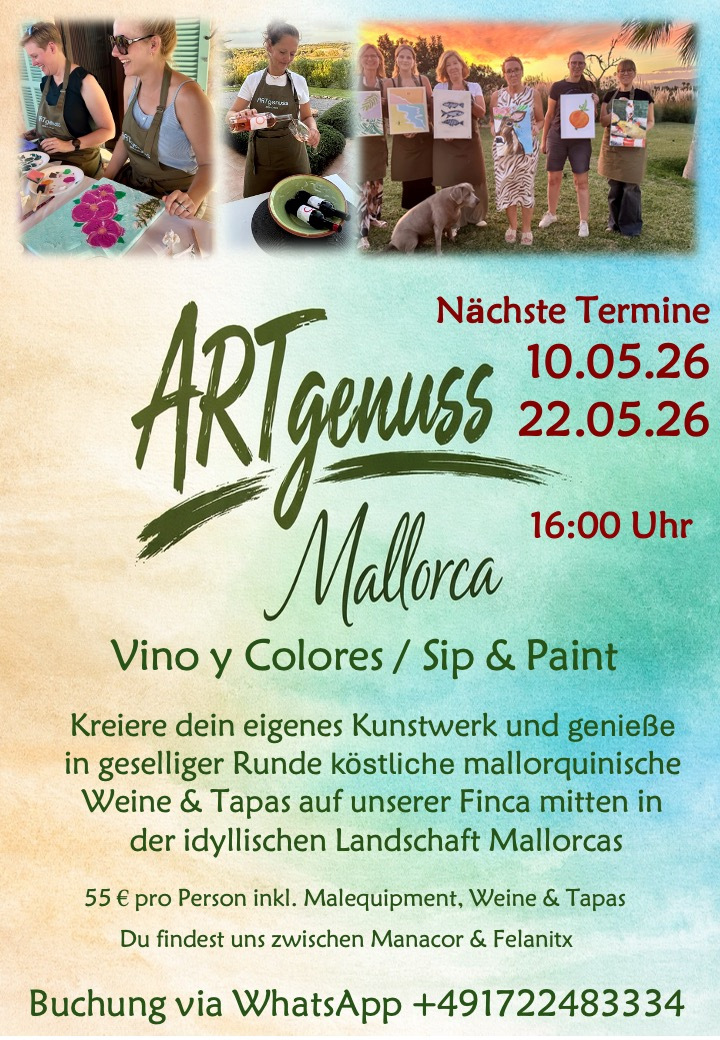 Infos & Buchungen - claudia@artgenuss-mallorca.com Tel.: +49 1722483334